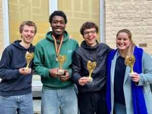 Samedi passé, les élèves de la première équipe de notre groupe de Parascolaire Échecs tenu par Madame Polin (Maxime Hauchamps, Thomas Wezel, Orell Ndoumbe, Theodor Osiac) ont gagné le titre de meilleure école secondaire de Bruxelles en se classant premiers sur les 21 équipes présentes.